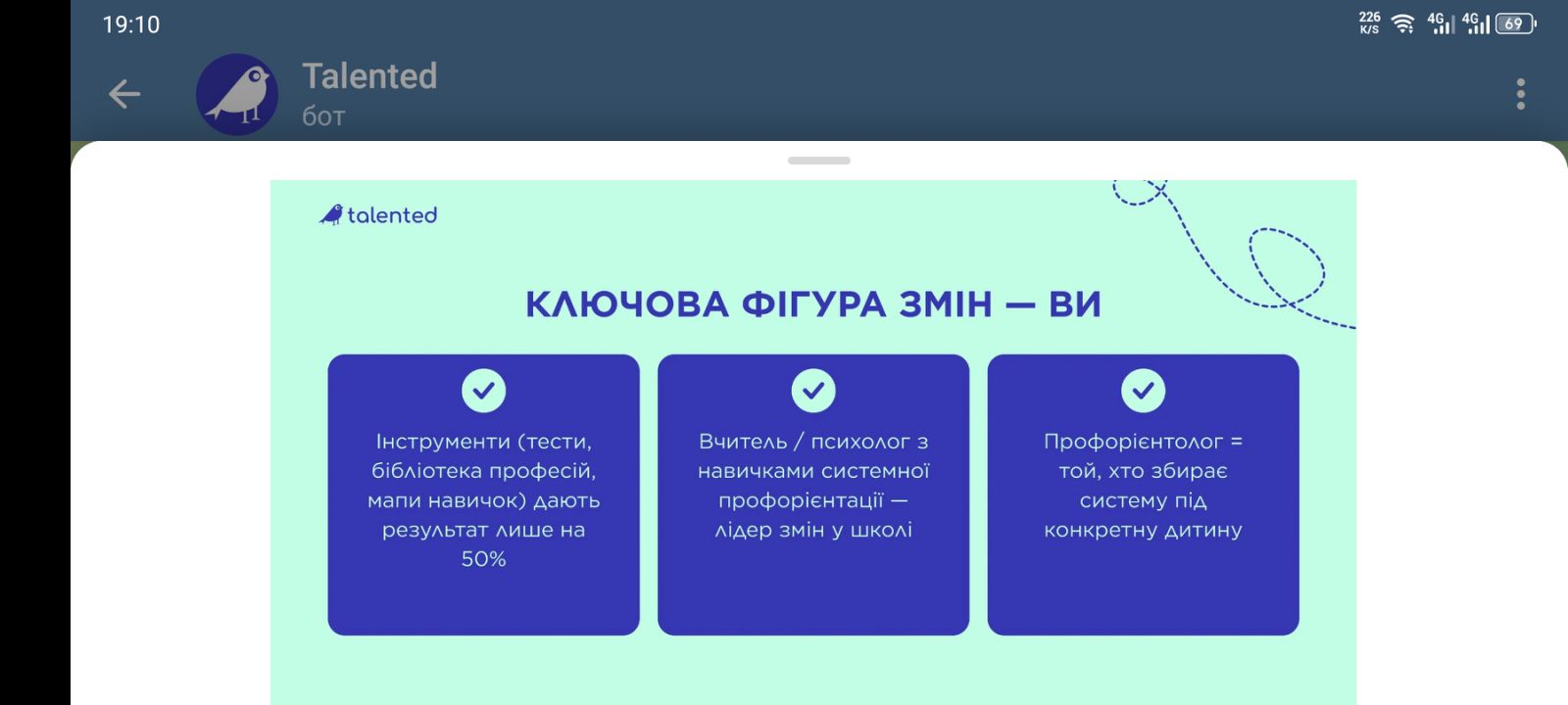 Участь у таких заходах сприяє розвитку сучасних підходів до роботи зі школярами, поглибленню розуміння освітніх та кар’єрних викликів і формуванню нової професійної спільноти, орієнтованої на управління кар’єрними траєкторіями молоді.