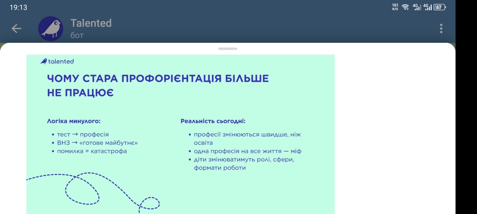 У межах обговорення було акцентовано увагу на переході від традиційної моделі вибору «однієї професії на все життя» до концепції кар’єри як інвестиційного портфеля, що постійно розвивається та адаптується. Окремо розглядалися питання трансформації профорієнтації — від формальних тестів до формування стратегічного мислення у школярів, а також реальні кейси супроводу учнів без використання шаблонних рішень.