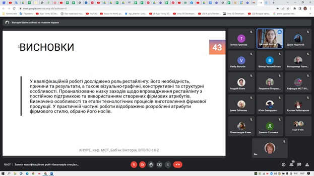 На кафедрі Медіасистем та технологій Харківського національного університету радіоелектроніки 21.12.2022 відбувся захист кваліфікаційних робіт здобувачів другого (магістерського) рівня вищої освіти спеціальності 186 Видавництво та поліграфія. Захист здобувачів другого (магістерського) рівня навчання, потоків ТЕМВм-21 та КТСВПВм-21.