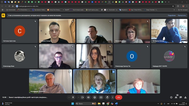 Засідання ЕК з захистом кваліфікаційних робіт (КР) магістрів 2025 року випуску в режимі відео-конференції. Групи денної форми навчання: КТСВПВм-24-1 та ТЕМВ-24-1 і заочної форми навчання – КТСВПВзм-24-1.