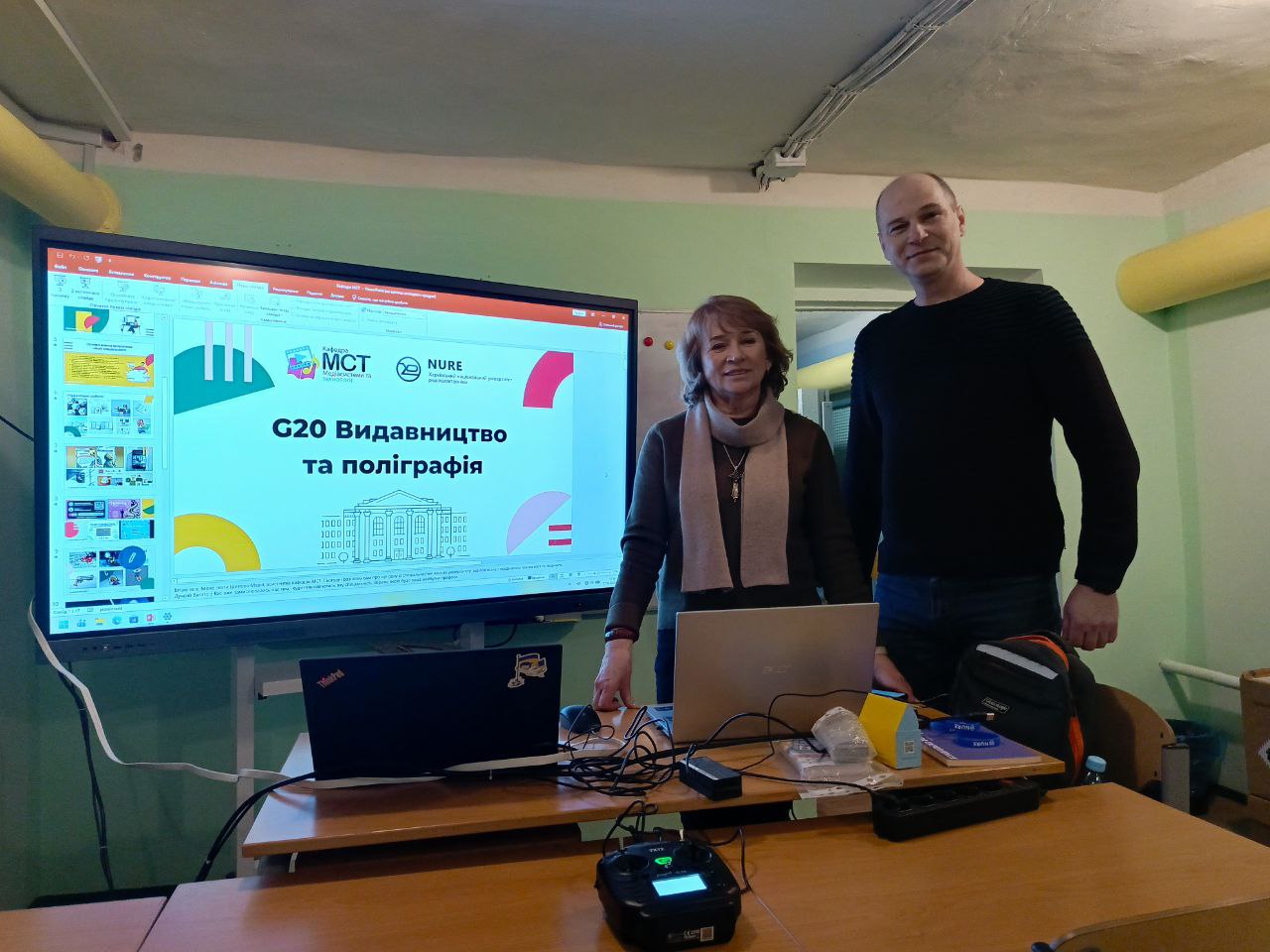 Практичний модуль, присвячений авіаційним системам і безпілотним літальним апаратам, провів Павло Галкін, представник кафедри ПЕЕА. Блок «Штучний інтелект для медіа» представила кафедра МСТ. Доцент кафедри Олександр Супрун разом із завідувачем лабораторії Сергієм Селевко продемонстрували, як AI-технології інтегруються у сферу створення цифрового контенту. Учасники дізналися про принципи роботи моделей штучного інтелекту, виконали практичну роботу зі створення відео та музичного аранжування за допомогою генеративних інструментів, а також долучилися до інтерактивної вікторини в середовищі Google Gemini.